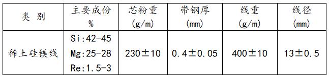 將高鎂球化劑用帶鋼包裹加工成線狀使用。球化時再用喂絲機將包芯線直接插到球化包內已調好成份的原鐵水里進行球化反應,球化劑的吸收率可達90%以上。應用于所有球墨鑄鐵件的生產。 ①.芯料全部為熔煉合金,夾雜物少、質地致密、成分均勻。 ②.反應平穩、吸收率穩定,可減少合金用量,節約資源和成本。